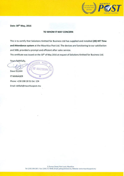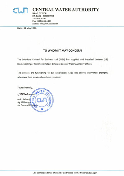 Solutions Knitted for Business Ltd, also known as SKBL, is a professionally managed company with prime objective of supplying cost-effective and top-quality HR/Payroll/Time & Attendance, Access Control System while providing constant high–end professional services to meet its customers’ needs and expectations. After having been in business with a foreign company since 1996, SKBL was set up in January 2004 as a totally independent and local company and introduced new diversified state-of-the-art products like fingerprint, hand geometry, Facial recognition system, Camera Surveillance System, 4G connectivity readers, and Geo localization clocking mobile app etc. SKBL is also present in Madagascar and other African countries where we supply our products and services.